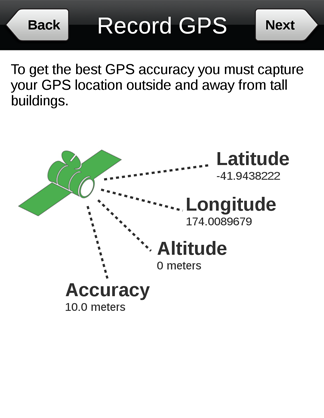 The GPS on a mobile device is not as accurate as a dedicated GPS. To get the best GPS accuracy, we recommend respondents capture their GPS location outside and away from tall buildings.
